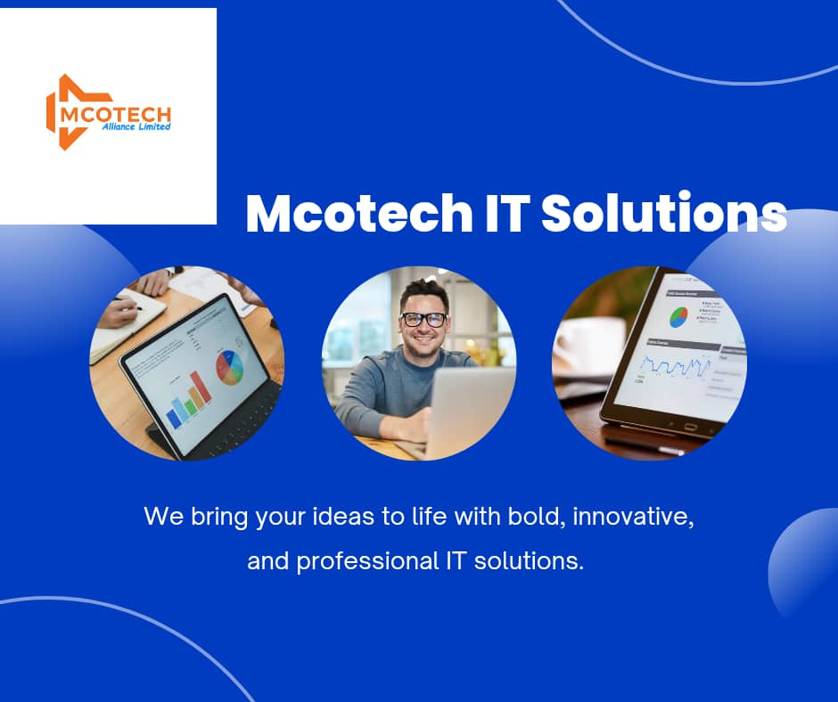 Mcotech IT Solutions offer services such as Software Dev, Website Design, Fintech Solutions, Website Hosting, Training.